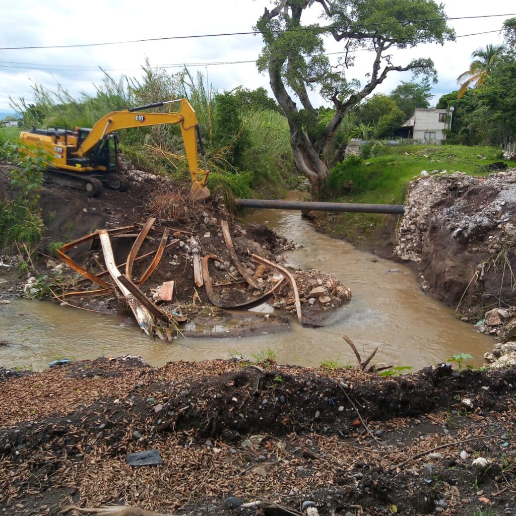 Durante esta primera etapa se llevó a cabo la demolición total de la estructura, utilizando maquinaria pesada tipo 320 para remover los escombros de la barranca. Esta acción es fundamental para evitar taponamientos que podrían ocasionar inundaciones en esta temporada de lluvias.